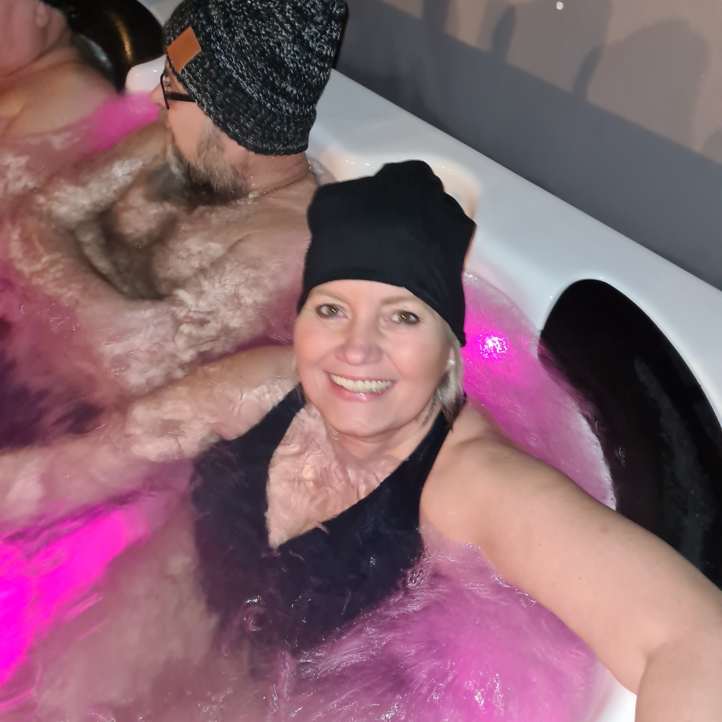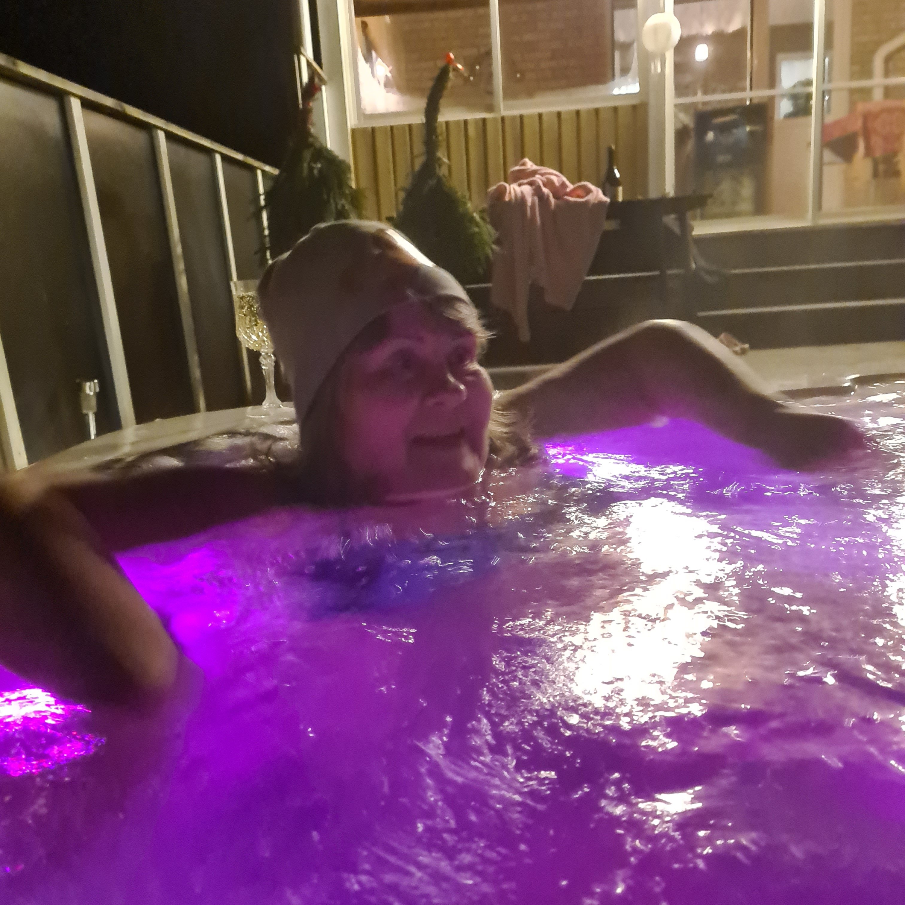Strax innan tolvslaget byttes det om till badkläder. Detta med spabad var helt nytt för mig, men jag blev inte besviken – däremot så gav det mersmak 😉.