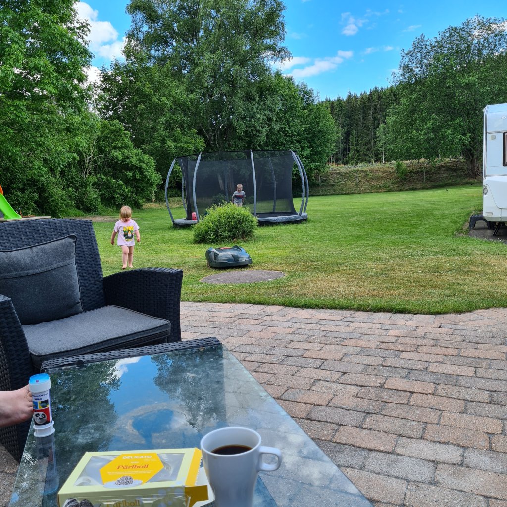 Mycket spring i deras små ben, hoppande i studsmattan och jag fick kaffekopp.