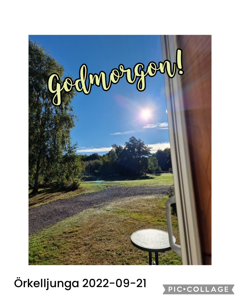 Godmorgon fina ni! Idag vaknade vi upp i vackra Skåne. Höstresan börjar med två nätter på Persköps ställplats i Örkelljunga. Underbar morgon med soligt väder…och tid för livsnjutning.