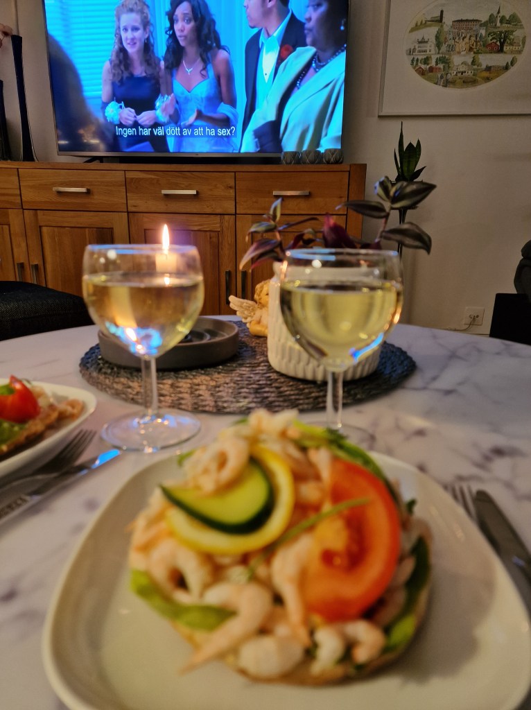 Efter en sjuk vecka ”firade vi räkmacka dag” denna fredagkväll framför tvn. Tackar Maxiköket i Vetlanda för två fantastiskt goda mackor.
