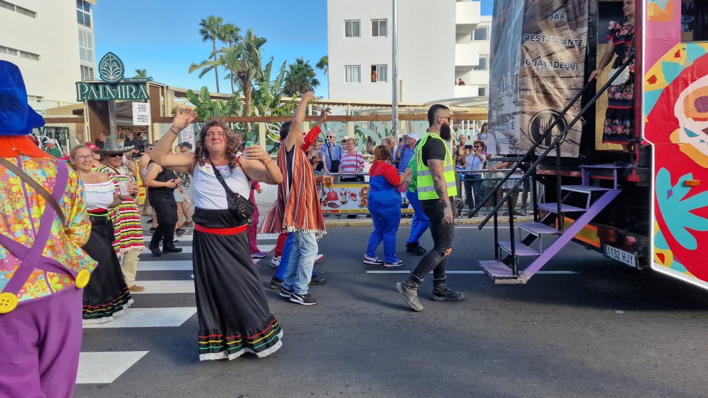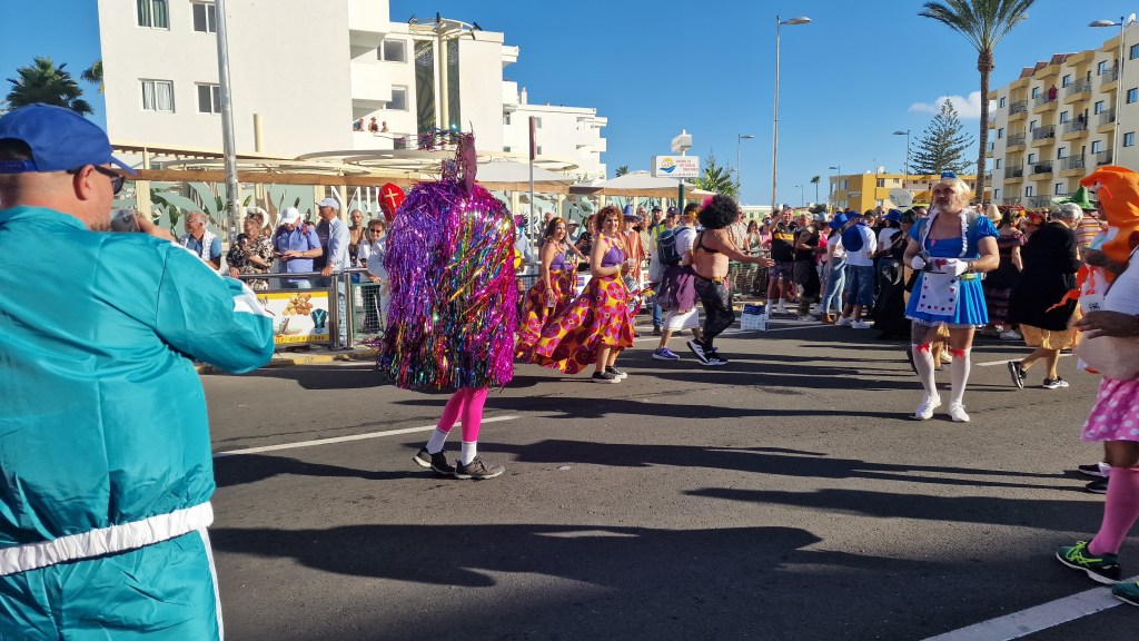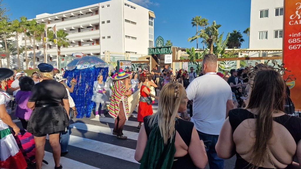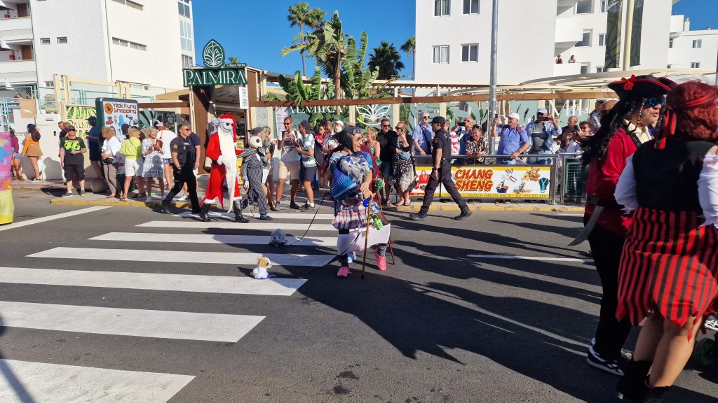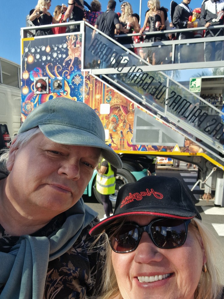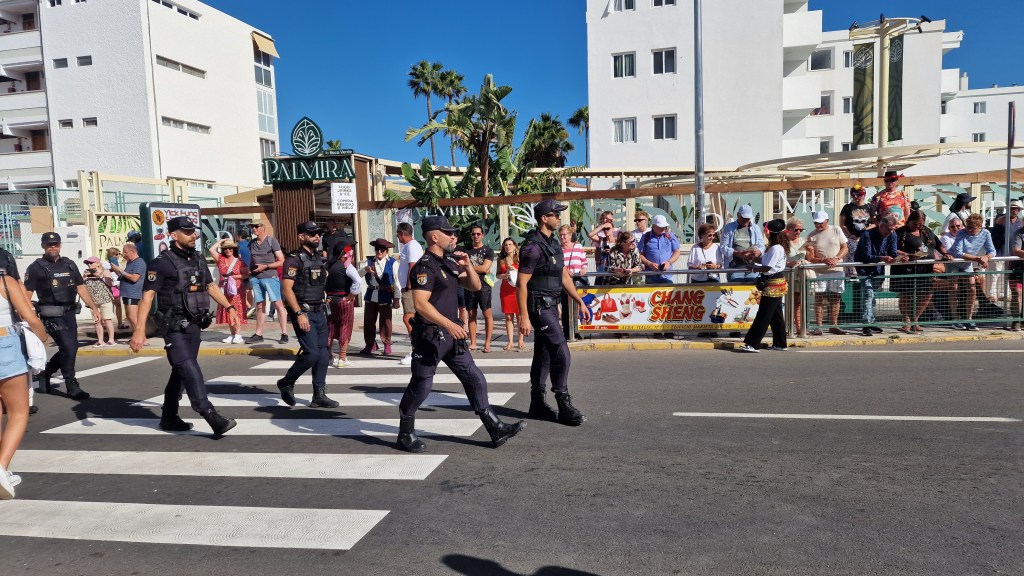 I Sverige har vi utkastare vid våra restauranger/krogar men här i Playa Del Ingles har de personal som inkastare istället. Vi åt en magiskt god ryggbiff med Canaria-potatis….wow så gott!