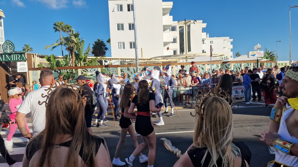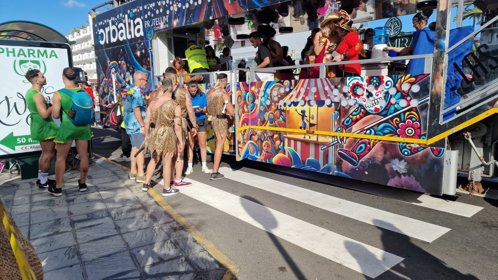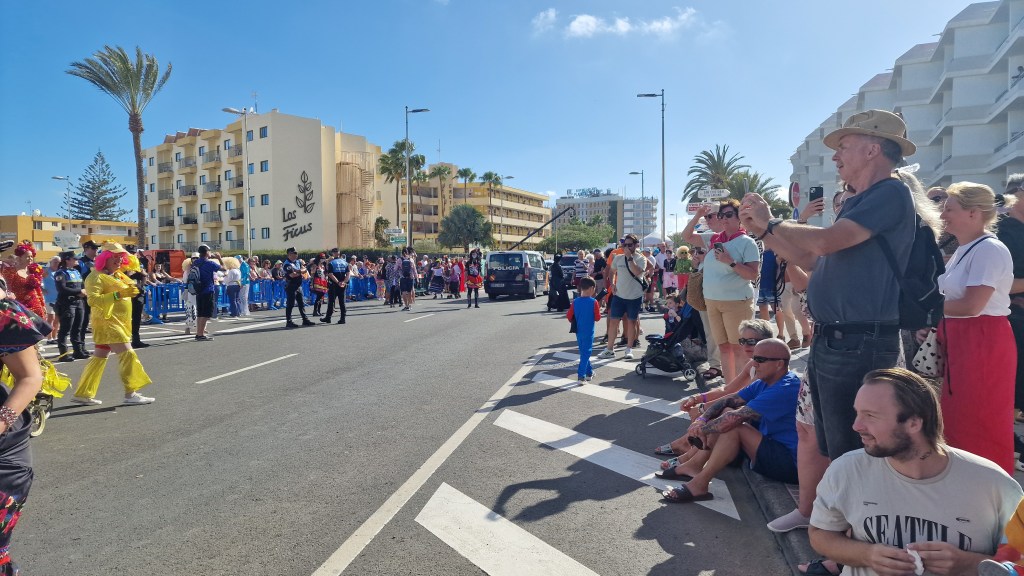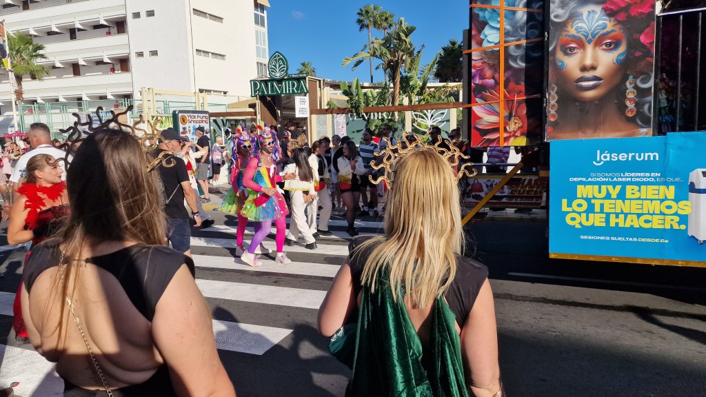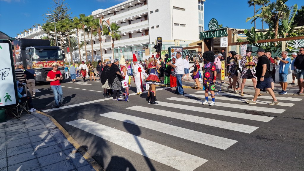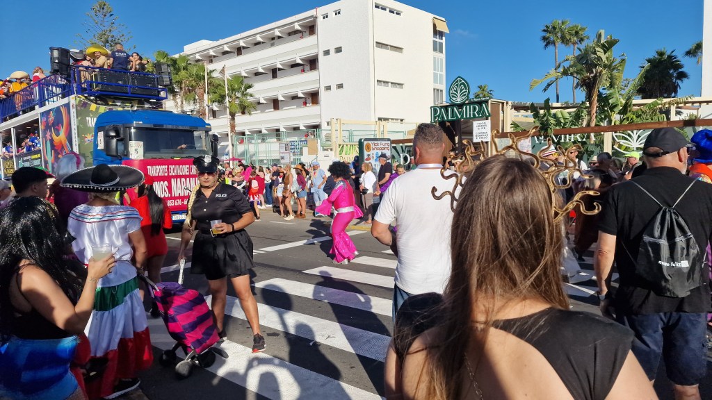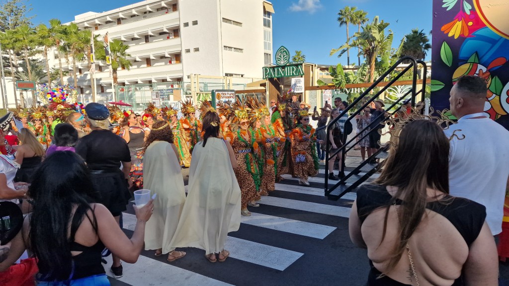 I Sverige har vi utkastare vid våra restauranger/krogar men här i Playa Del Ingles har de personal som inkastare istället. Vi åt en magiskt god ryggbiff med Canaria-potatis….wow så gott!