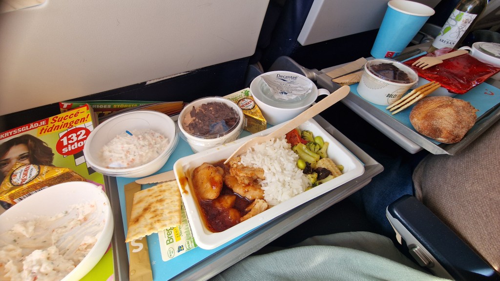 Jag har flugit två gånger innan till Gran Canaria och varje gång, även denna gång så är det en härlig känsla när flygplanet gasar på till man är ovan molnen. Lite vindmotstånf hade vi nog för det kändes som ”vi stod stilla” i luften ett tag. Nu kommer lite bilder inifrån planet.