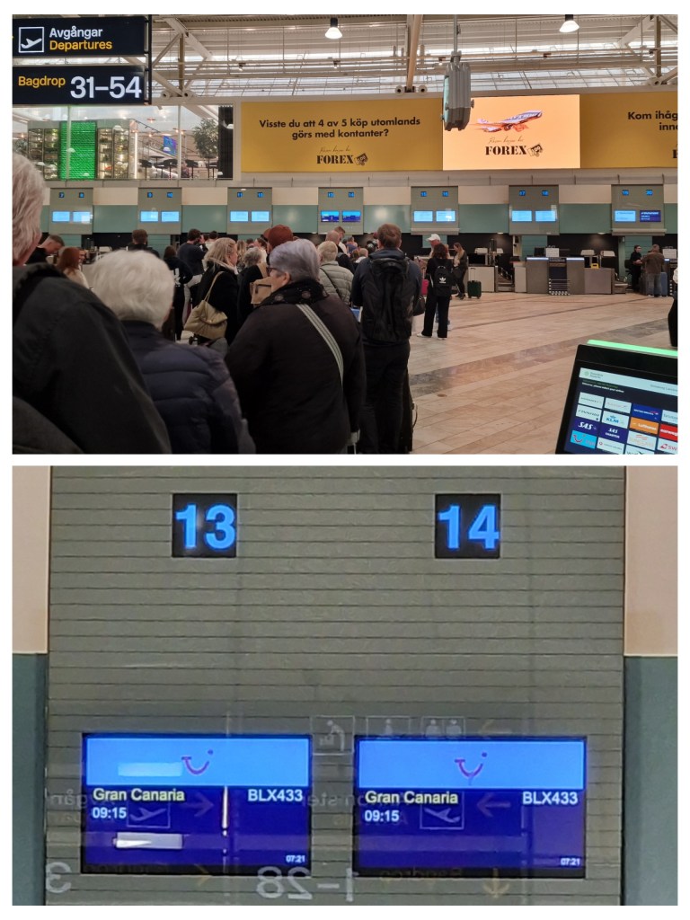 Vårt flyg till Gran Canaria lyfte sedan 9.15 och vi hade platser på rad 7.