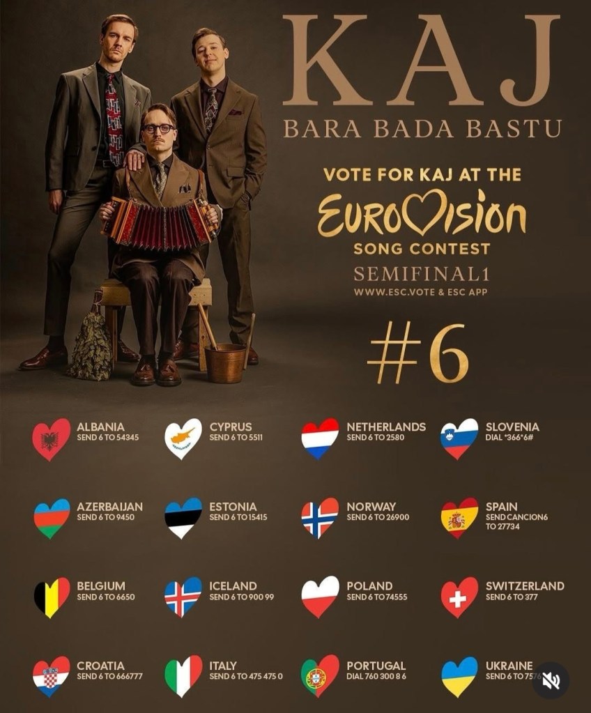 Så nu är Euro Vision Song Contest igång. Ikväll ska KAJ representera Sverige med sin låt Bara Bada Bastu.